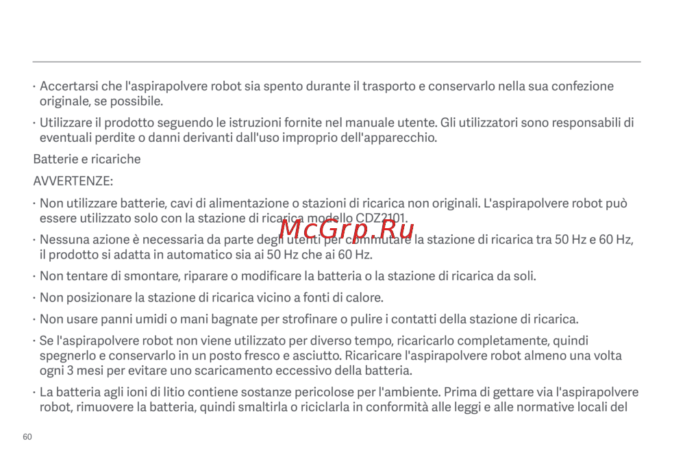 spegnerlo e conservarlo in un posto fresco e asciutto. Ricaricare l'aspirapolvere robot almeno una volta