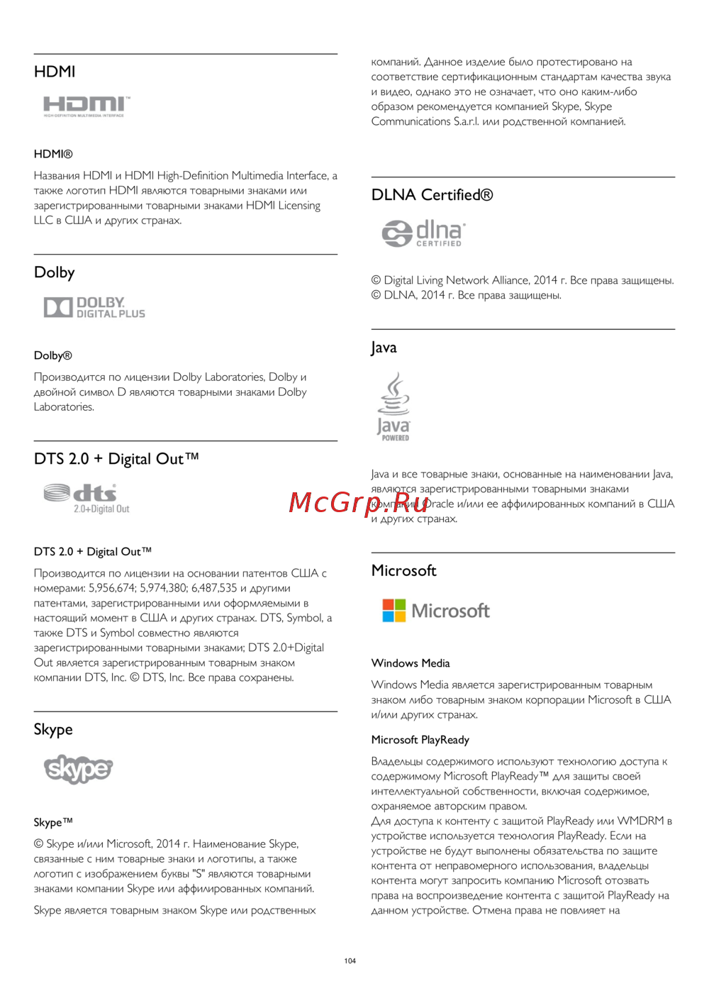 Philips 49PUS7809/60 — информация о товарных знаках и лицензиях на мультимедийные технологии [104/110]