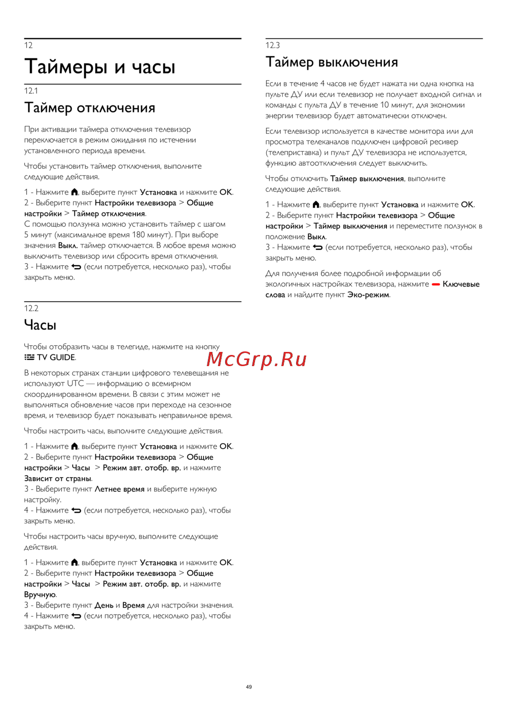 Philips 49PUS7809/60 — настройка таймера и часов на телевизоре: пошаговое руководство [49/110]