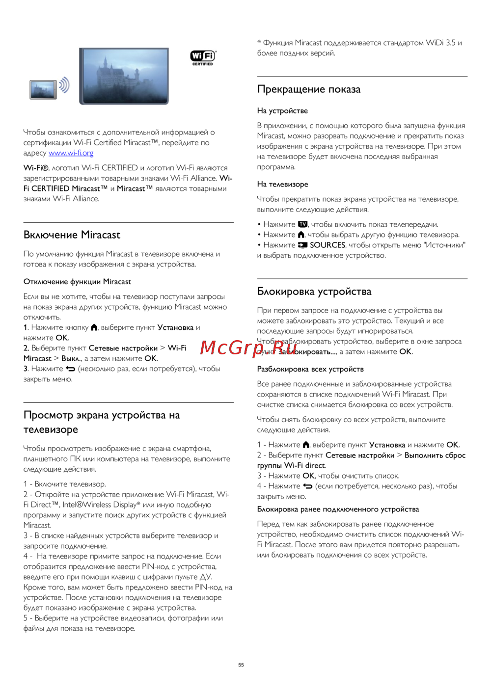 сертификации Wi-Fi Certified Miracast™, перейдите по