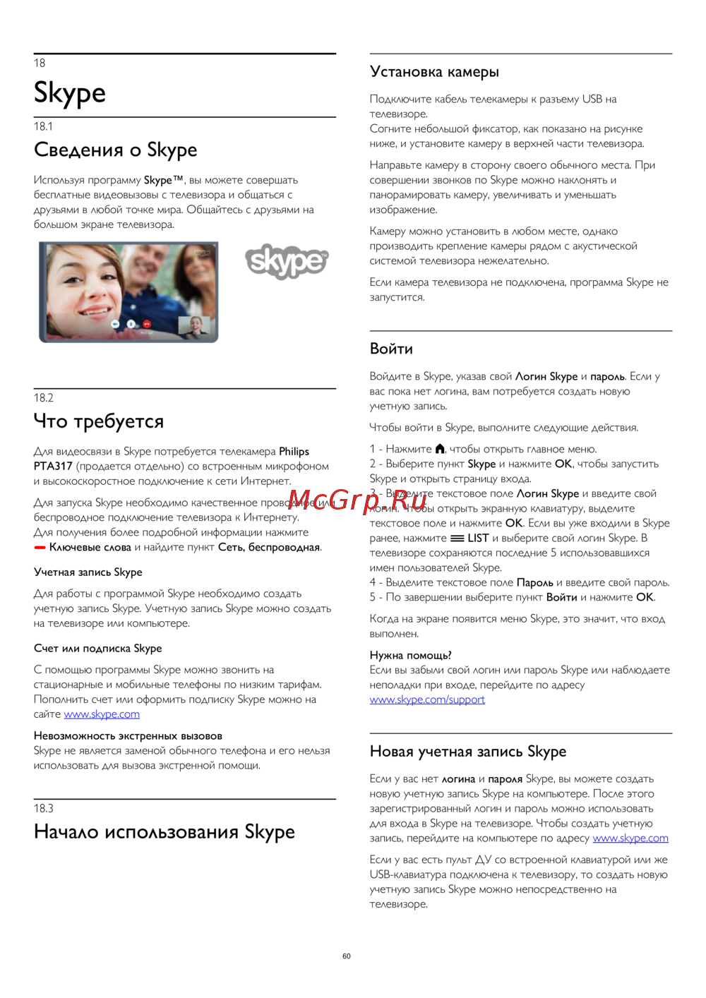 Philips 49PUS7809/60 — как использовать видеосвязь на телевизоре с помощью Skype [60/110]