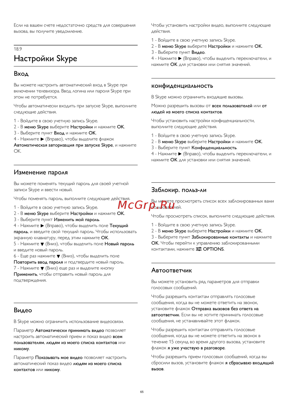 Philips 49PUS7809/60 — настройки Skype: автоматический вход, изменение пароля и конфиденциальность [65/110]
