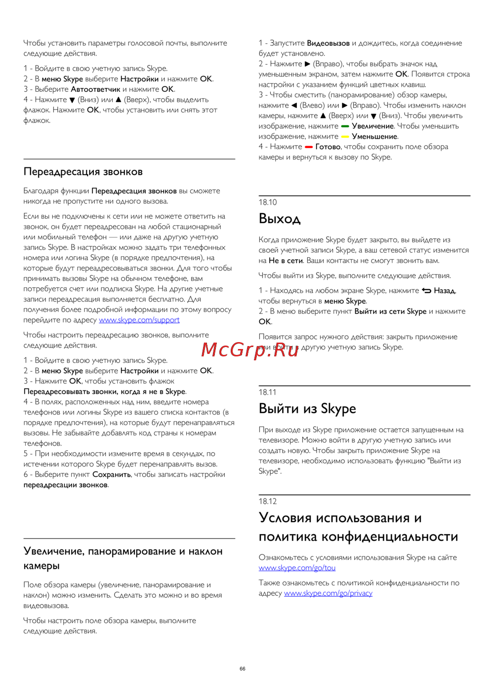 Philips 49PUS7809/60 — настройка голосовой почты и переадресации звонков в Skype [66/110]