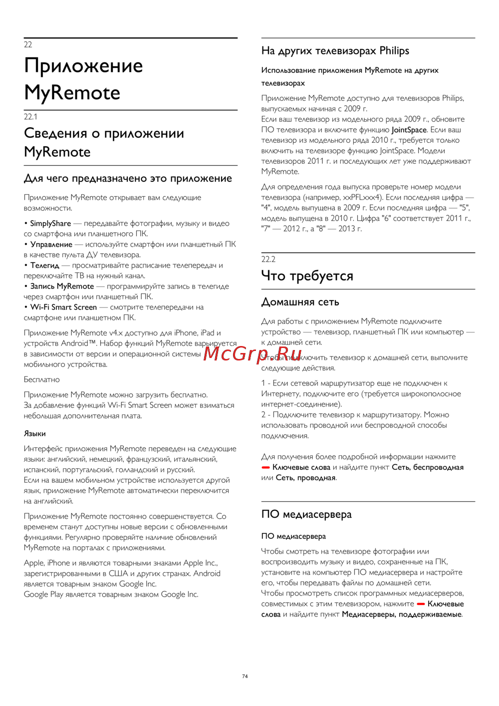 Philips 49PUS7809/60 — приложение для управления телевизором и мультимедиа на мобильных устройствах [74/110]
