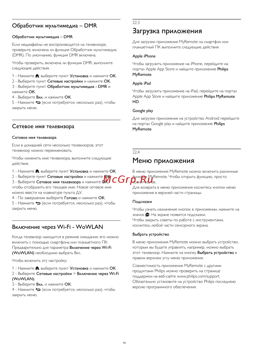 Philips 49PUS7809/60 — настройка мультимедиа и сетевых функций телевизора [75/110]