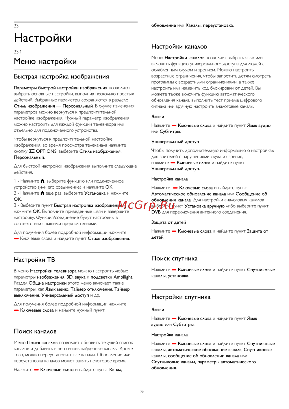 Philips 49PUS7809/60 — настройки изображения и каналов для телевизоров: руководство [79/110]