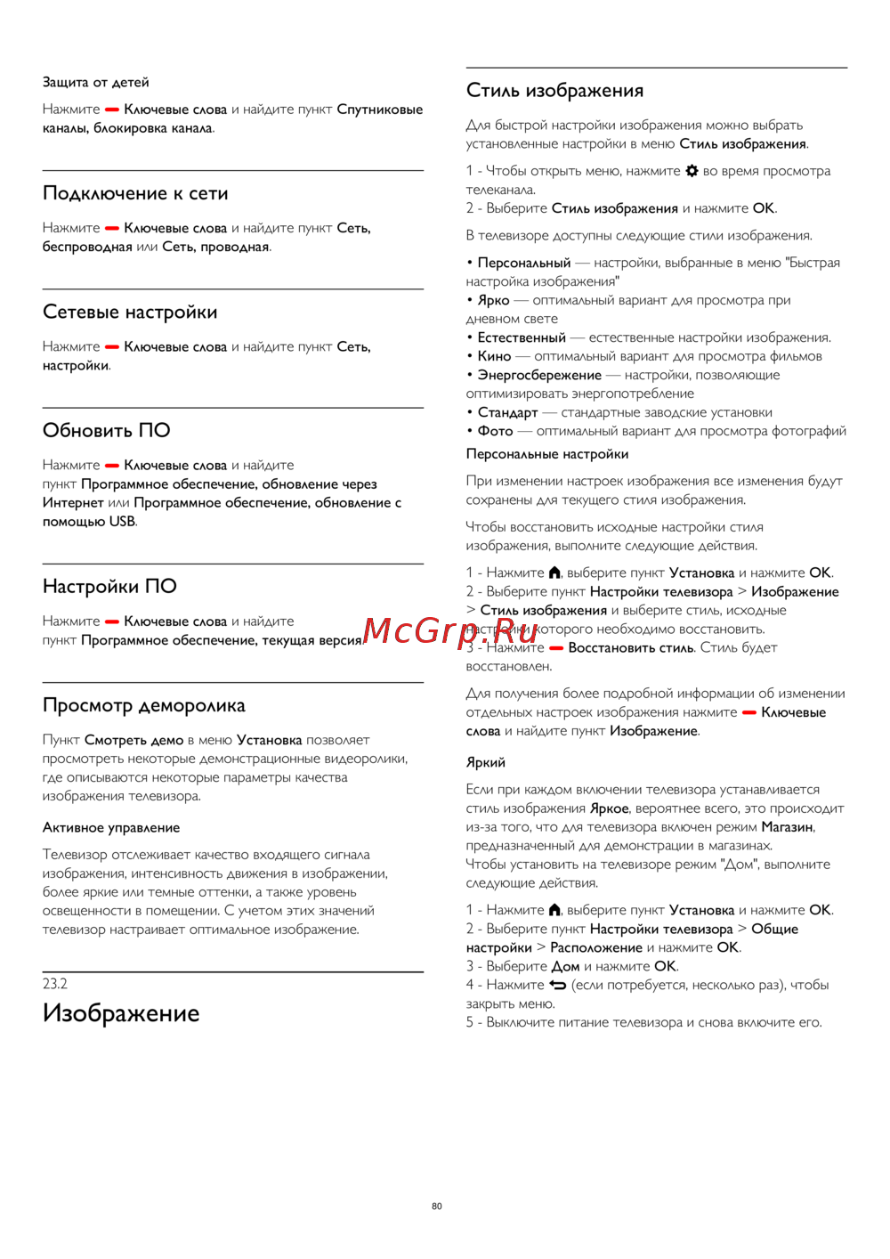 Philips 49PUS7809/60 — настройки телевизора: управление изображением и сетью [80/110]