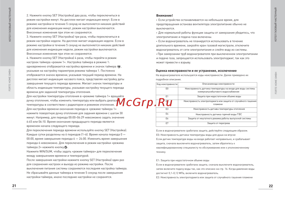 Oasis BE-24 — инструкция по настройке таймера и температуры отопления [13/21]