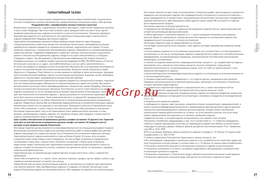 ремонт и техническое обслуживание изделия, находится на сайте www.forteklima.ru в Разделе