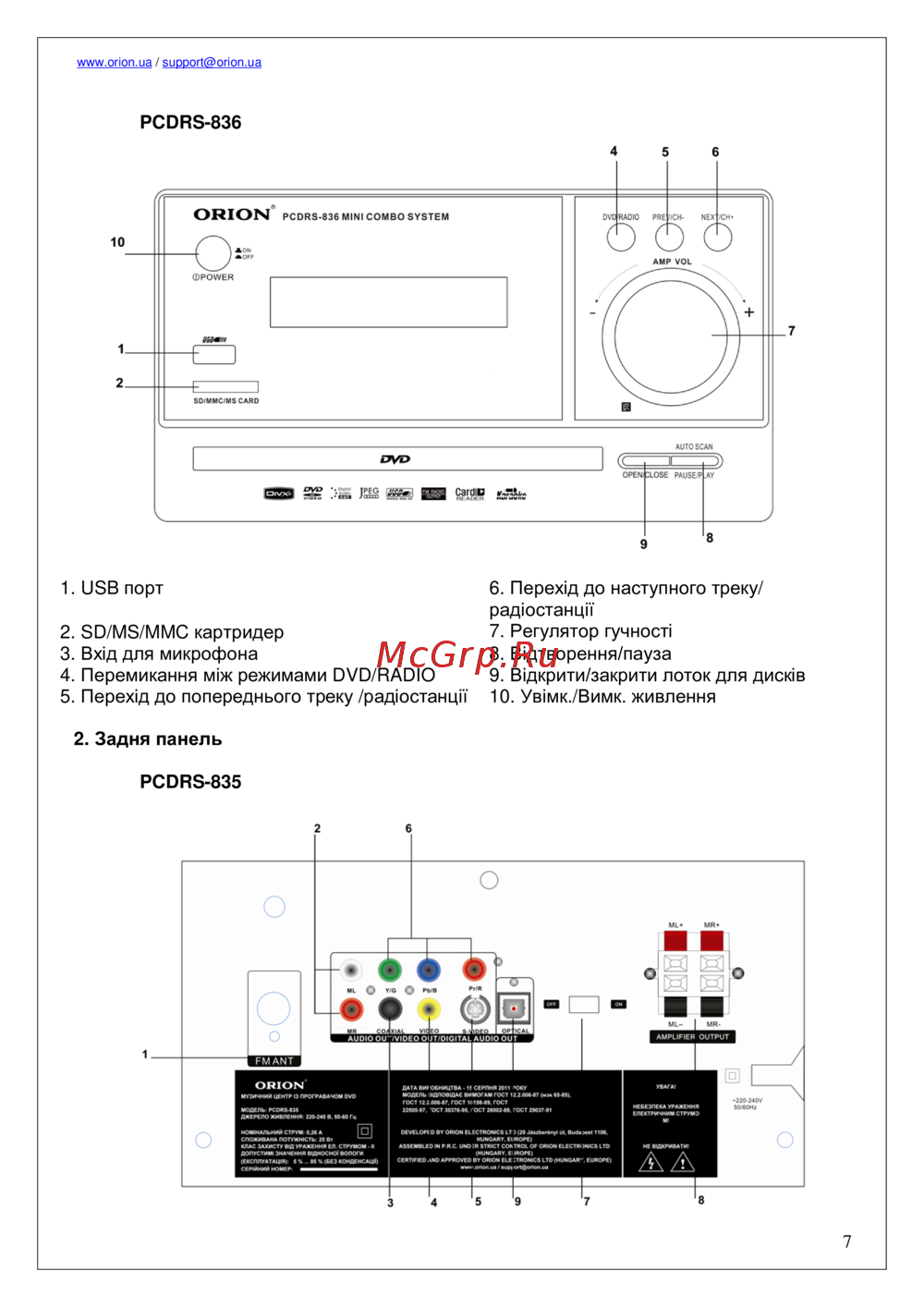 Orion PCDRS-836 Инструкция по эксплуатации онлайн [7/33] 97600