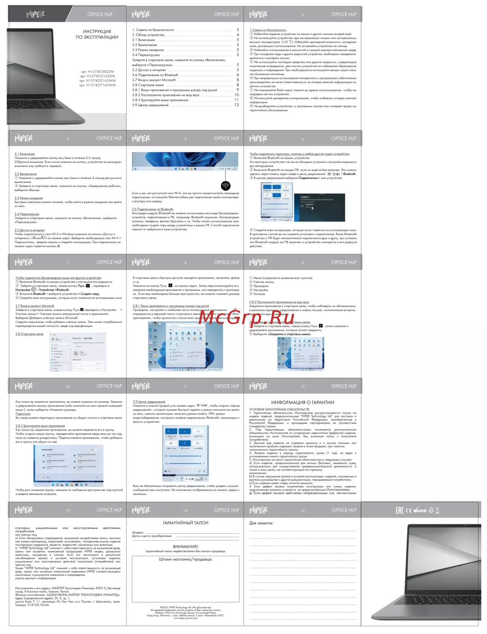 Hiper OFFICE HLP H1574O5165WM/15.6"/Core i5-1235U/16/512/Win/Metallic GreyРуководство по эксплуатации -