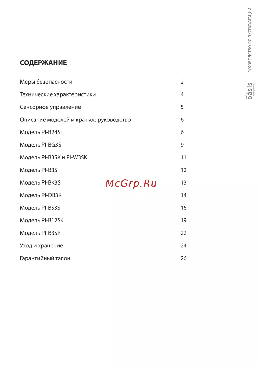 Oasis РI-B3SK Руководство по эксплуатации онлайн
