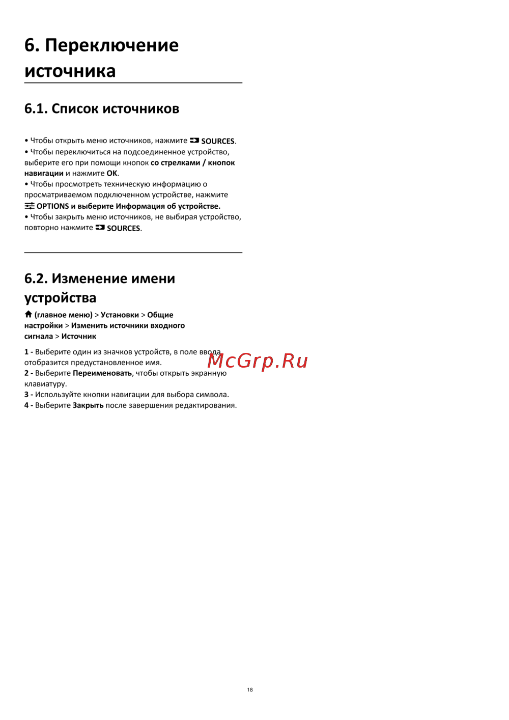 • Чтобы закрыть меню источников, не выбирая устройство,