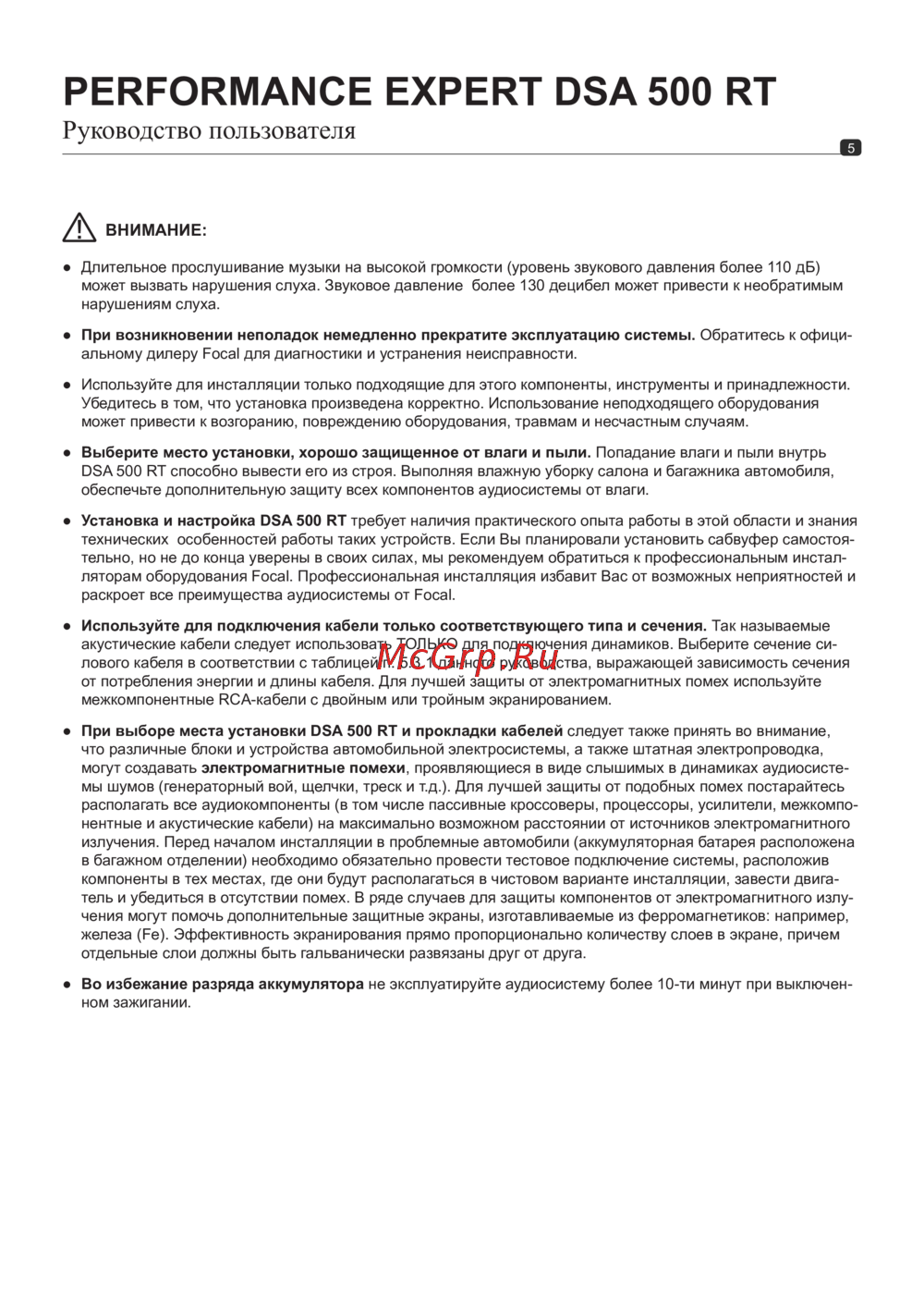 Focal Performance DSA 500 RT — руководство пользователя для установки аудиосистемы [5/50]