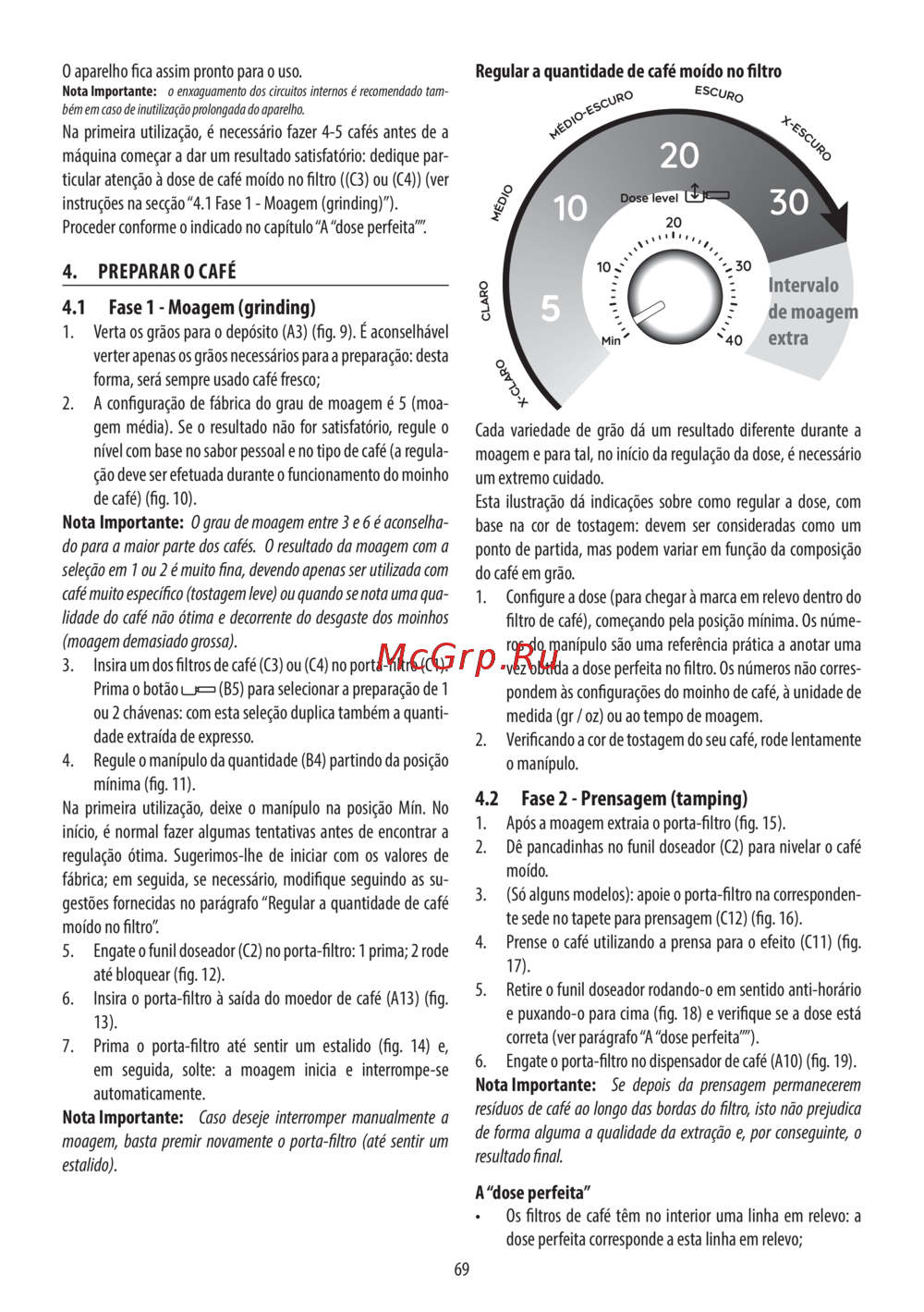 Nota Importante: O grau de moagem entre 3 e 6 é aconselha-