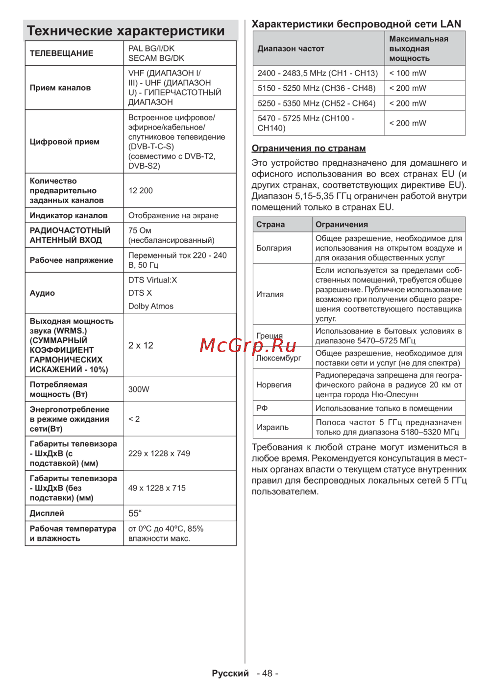 Диапазон 5,15-5,35 ГГц ограничен работой внутри