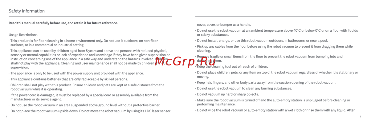 - Руководство пользователя робот пылесоса xiaomi robot vacuum x1 p.2