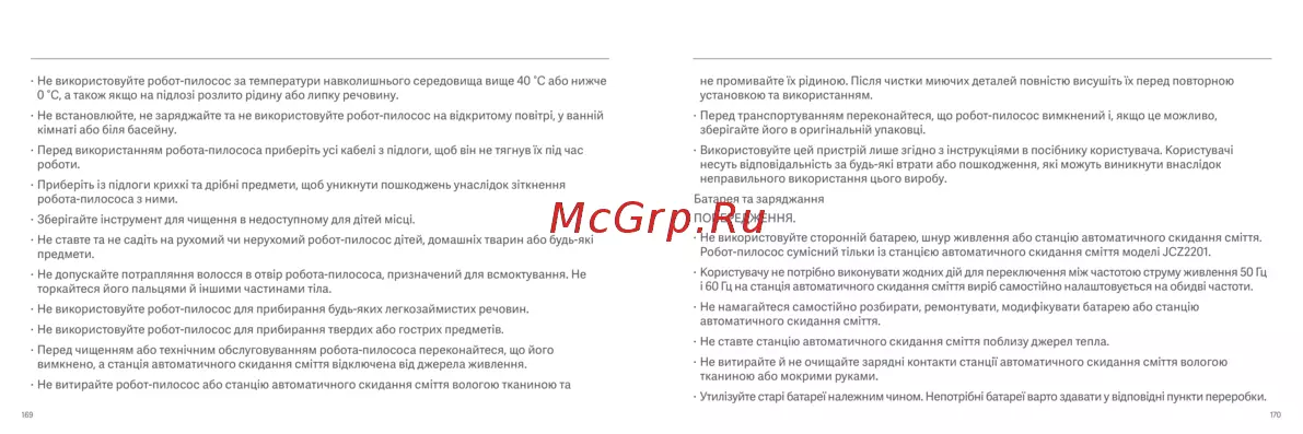 Невстановлюйте, незаряджайте та невикористовуйте робот-пилосос навідкритому повітрі, уванній
