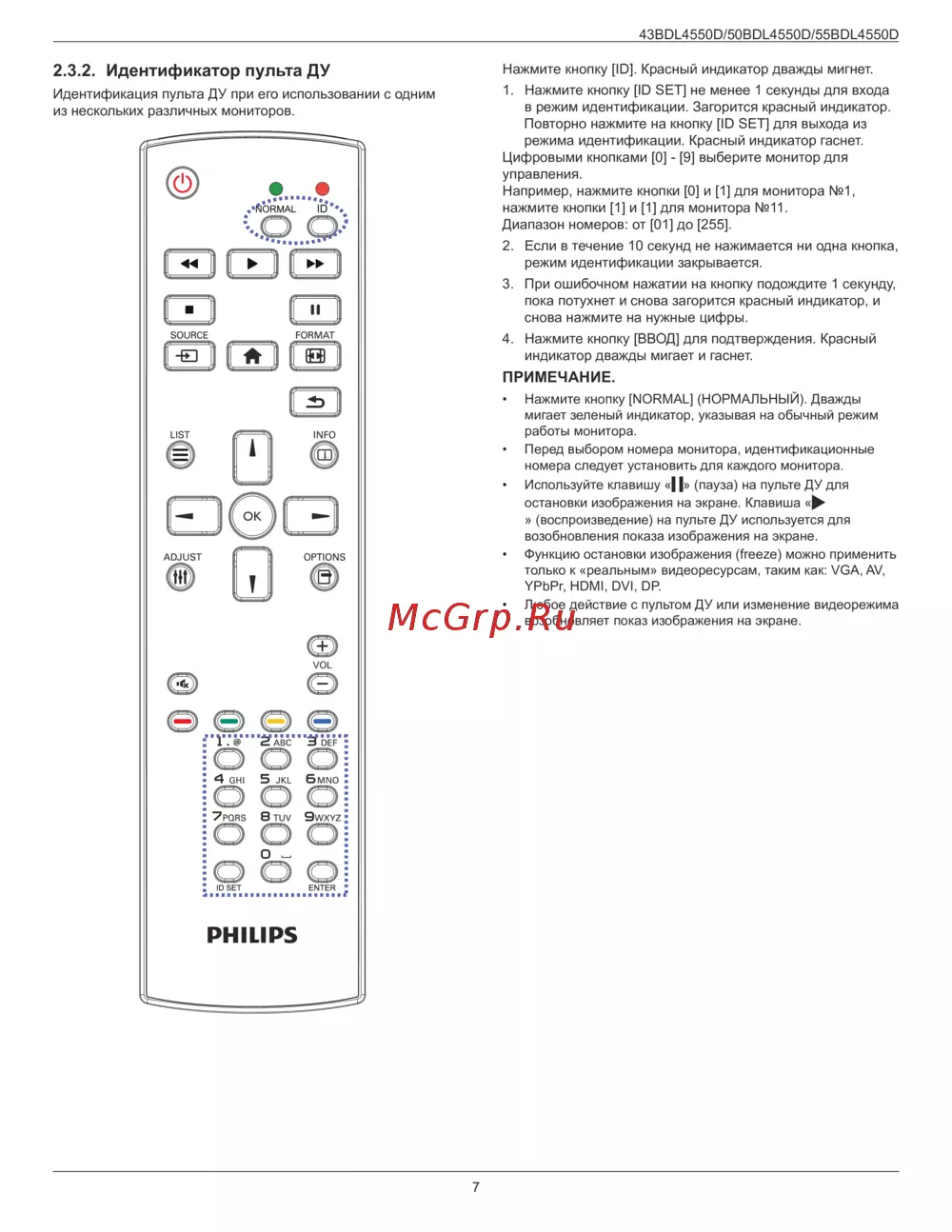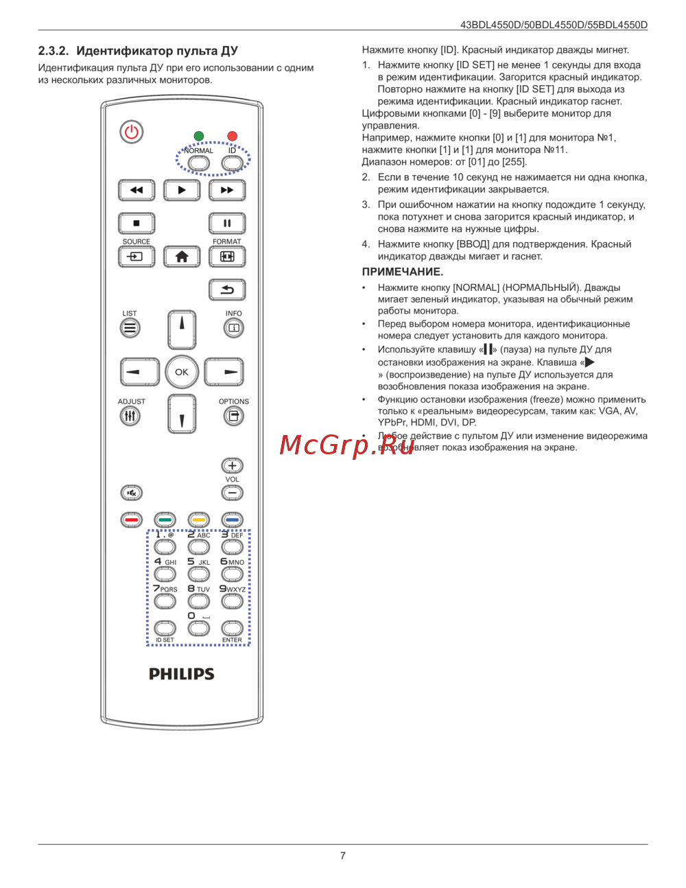 Philips 43BDL4550D/00 — идентификация пульта ДУ для управления несколькими мониторами [19/72]