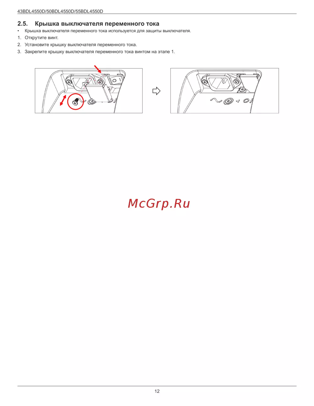 Philips 43BDL4550D/00 [24/72] Крышка выключателя переменного тока