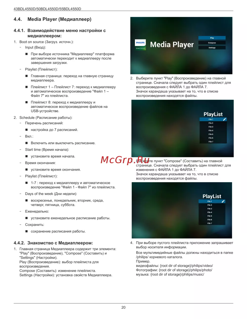 Philips 43BDL4550D/00 — настройка медиаплеера: управление плейлистами и расписанием [32/72]