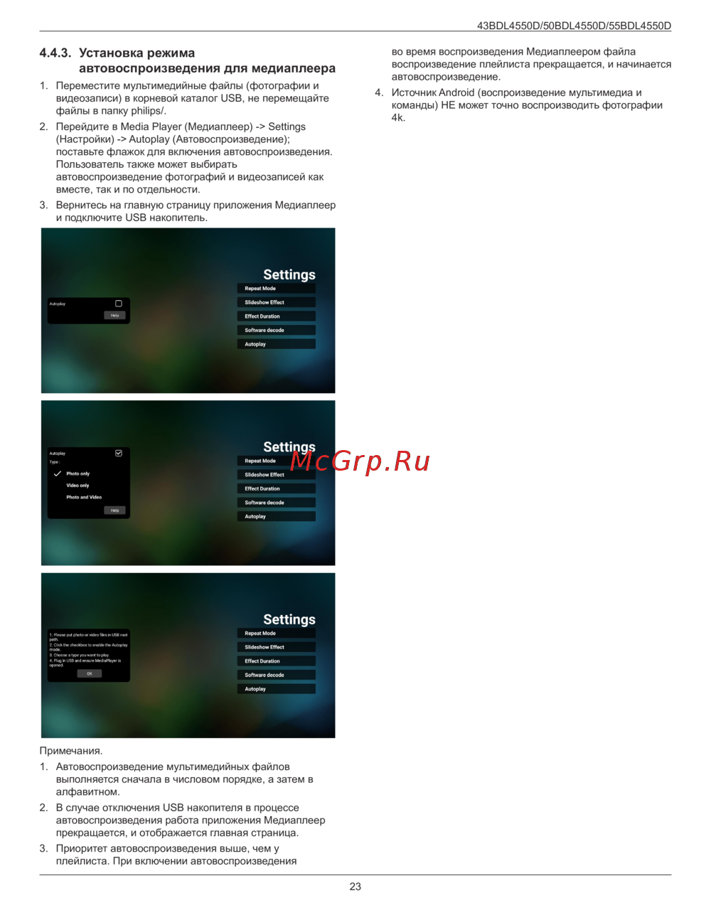 Philips 43BDL4550D/00 — настройка автовоспроизведения для медиаплеера на USB [35/72]