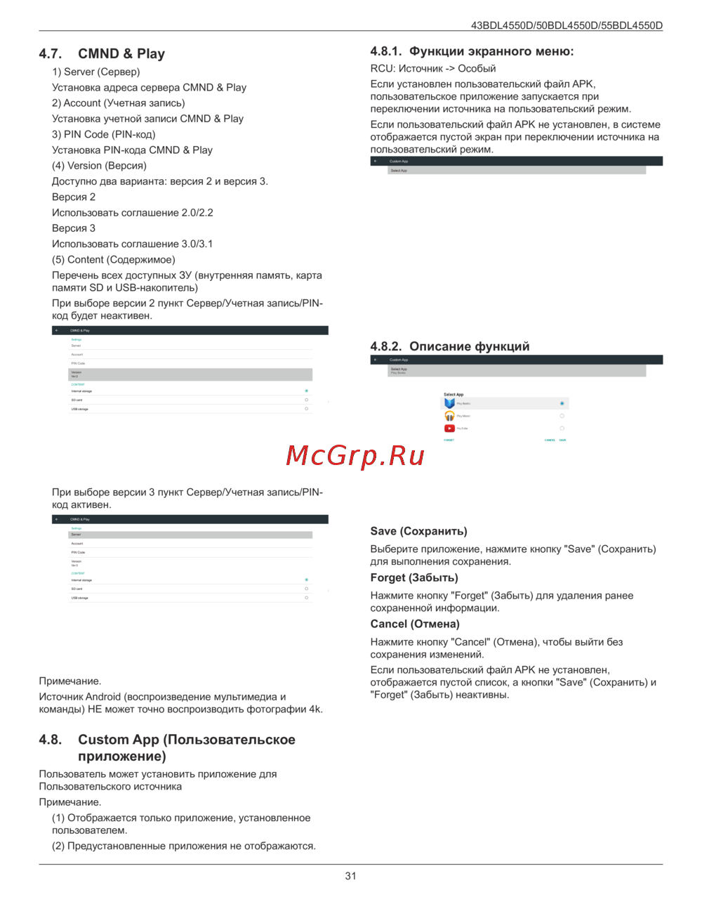 Philips 43BDL4550D/00 — настройки CMND & Play: Сервер, Учетная запись и Пользовательские приложения [43/72]