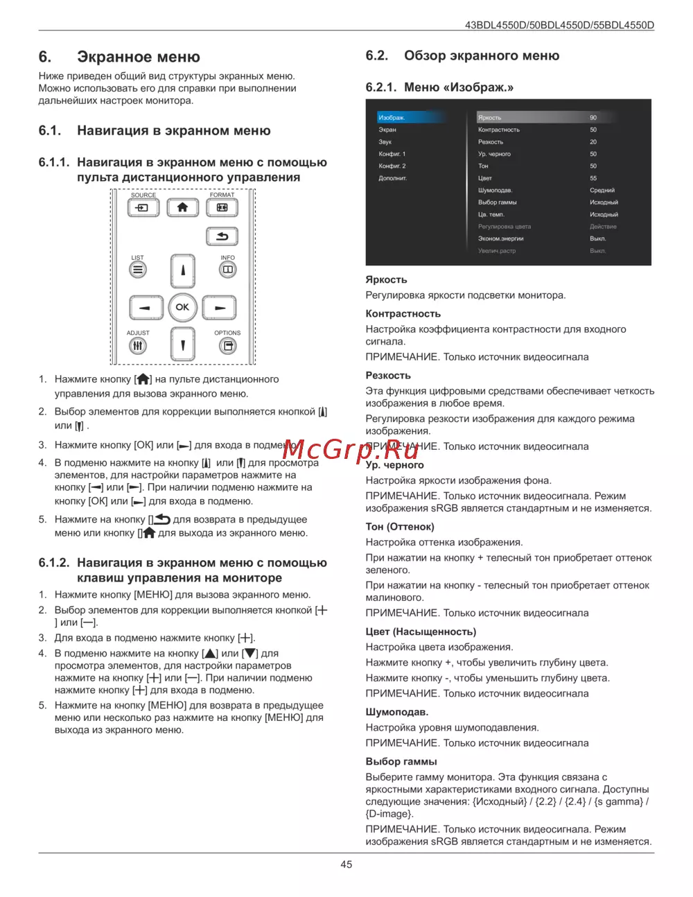 6.1. Навигация в экранном меню