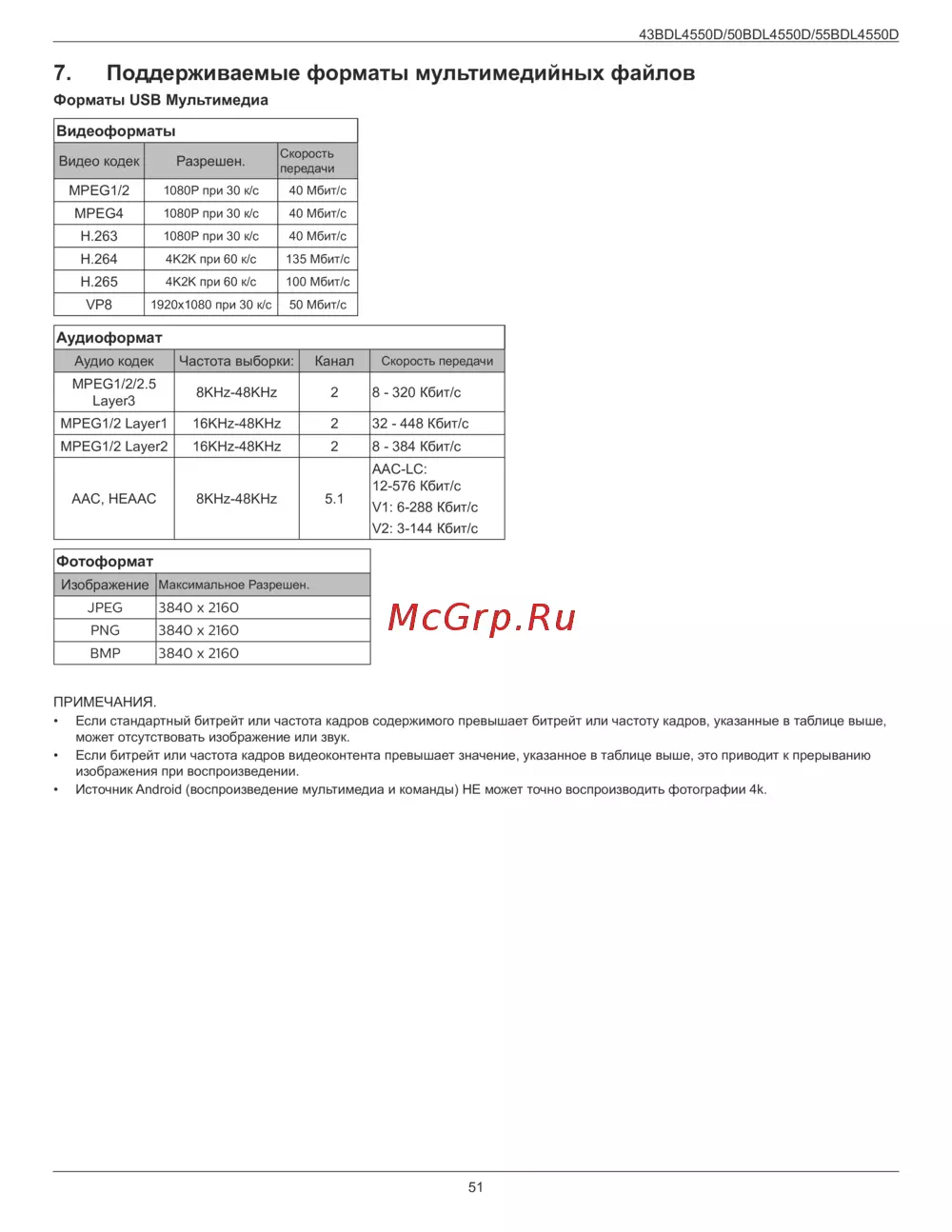 - Поддерживаемые форматы мультимедийных файлов p.63