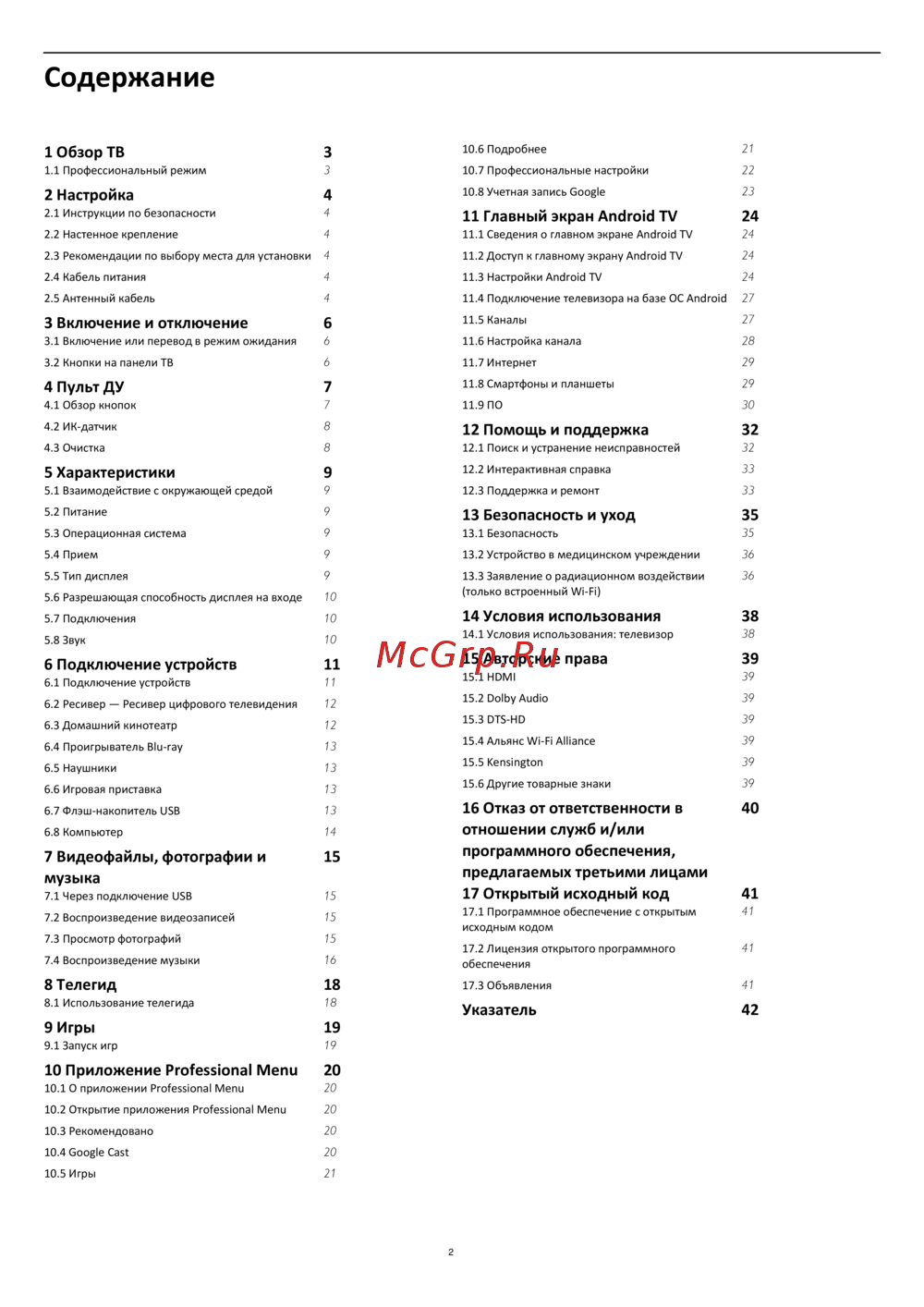 - Условия использования телевизор p.38