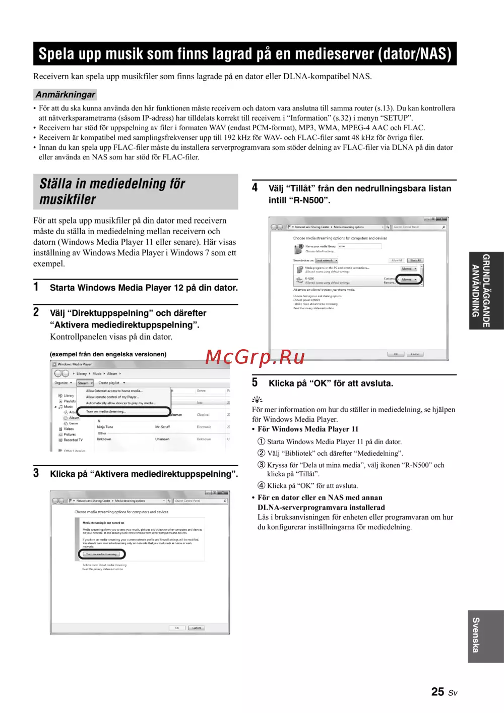 • För att du ska kunna använda den här funktionen måste receivern och datorn vara anslutna till samma router (s.13). Du kan kontrollera
