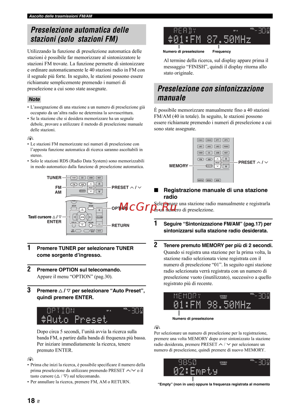 Seguire “Sintonizzazione FM/AM” (pag.17) per