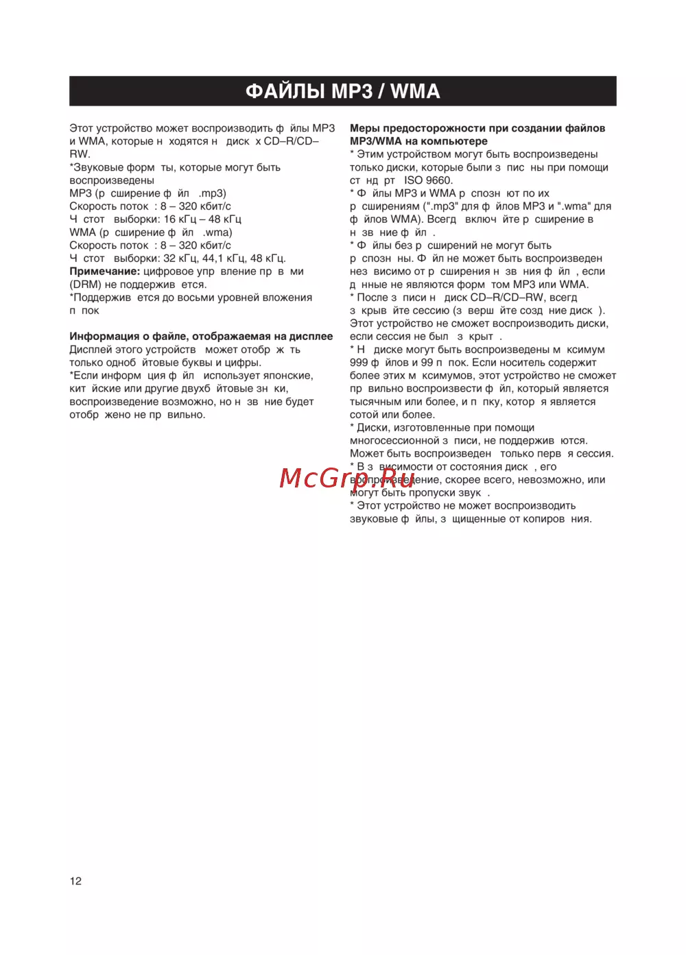 и WMA, которые находятся на дисках CD–R/CD–