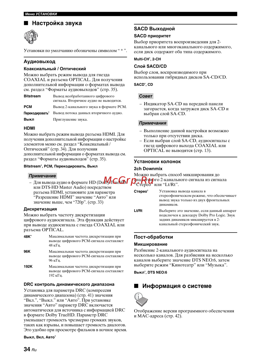 см. раздел “Форматы аудиовыходов” (стр. 35).