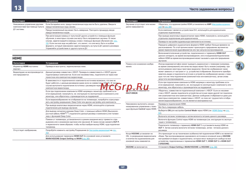 Pioneer VSX-924-K — устранение неполадок с пультом ДУ и HDMI: советы и рекомендации [107/131]