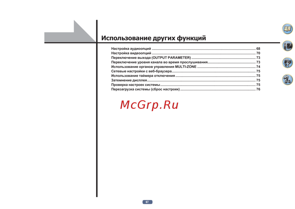 Использование органов управления MULTI-ZONE .............................................................. 74
