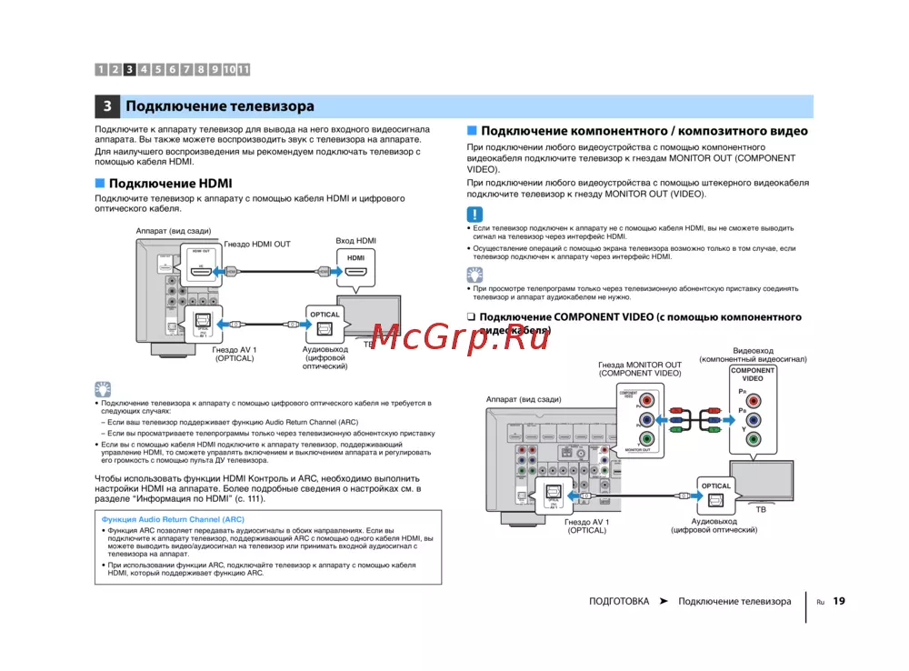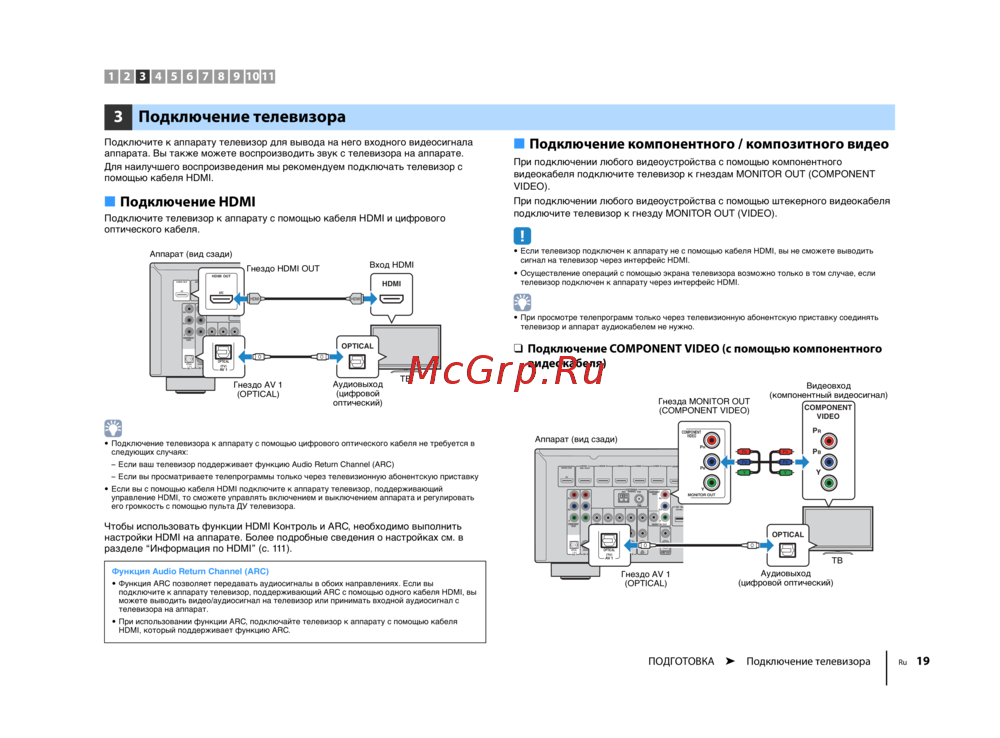 ПОДГОТОВКА ➤ Подключение телевизора Ru 19