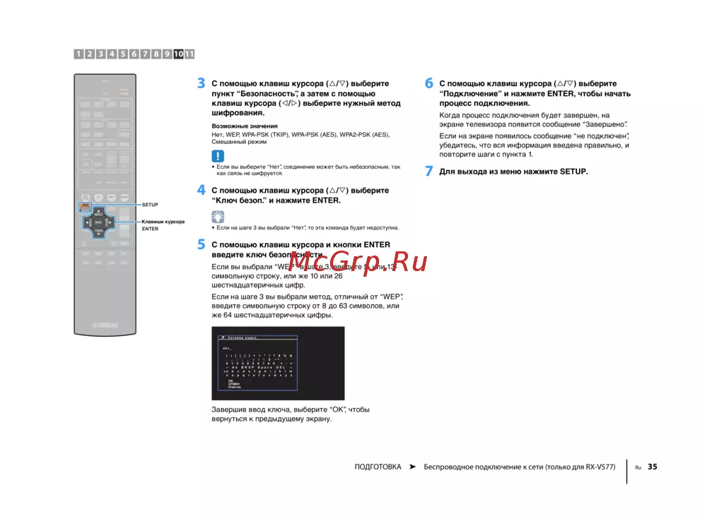 ПОДГОТОВКА ➤ Беспроводное подключение к сети (только для RX-V577) Ru 35