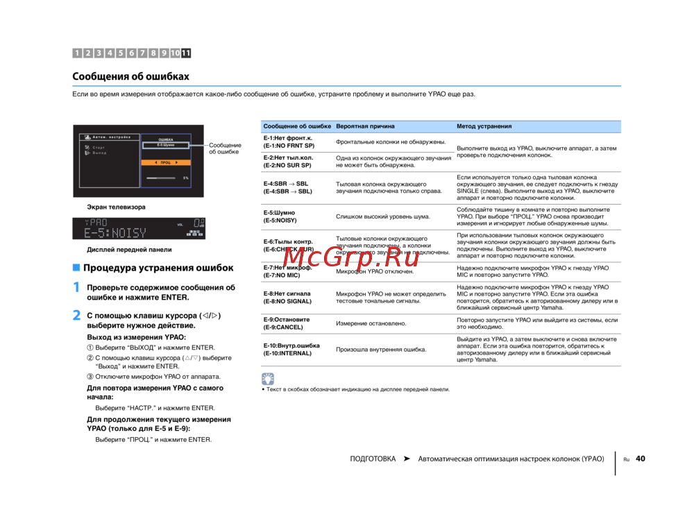 MIC и повторно запустите YPAO. Если эта ошибка