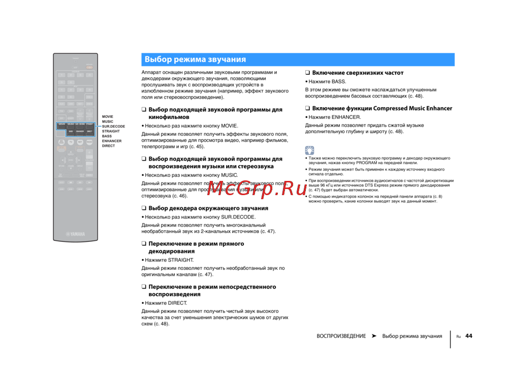 ВОСПРОИЗВЕДЕНИЕ ➤ Выбор режима звучания Ru 44