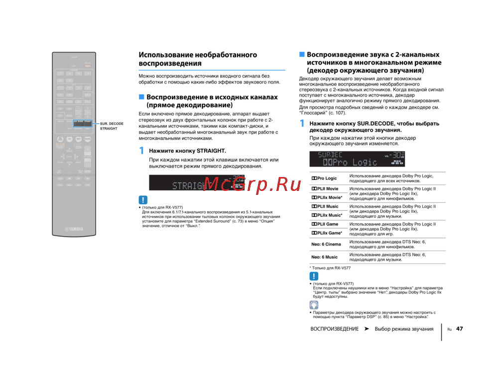 Yamaha RX-V477 Black [47/123] Использование необработанного