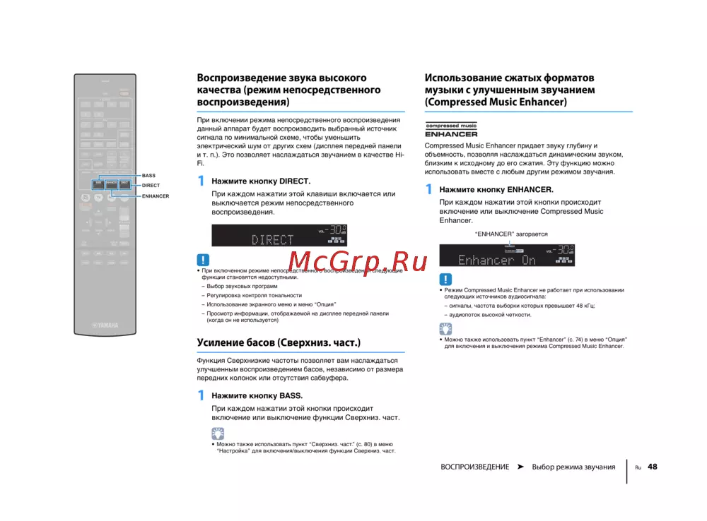 ВОСПРОИЗВЕДЕНИЕ ➤ Выбор режима звучания Ru 48