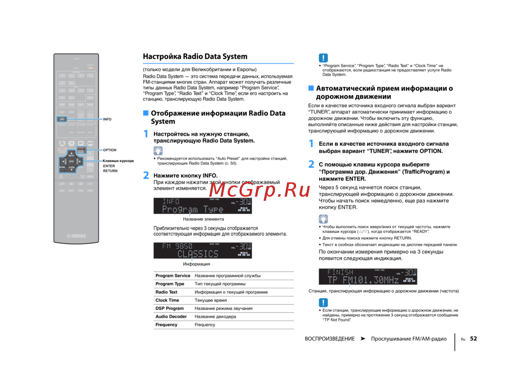 ВОСПРОИЗВЕДЕНИЕ ➤ Прослушивание FM/AM-радио Ru 52