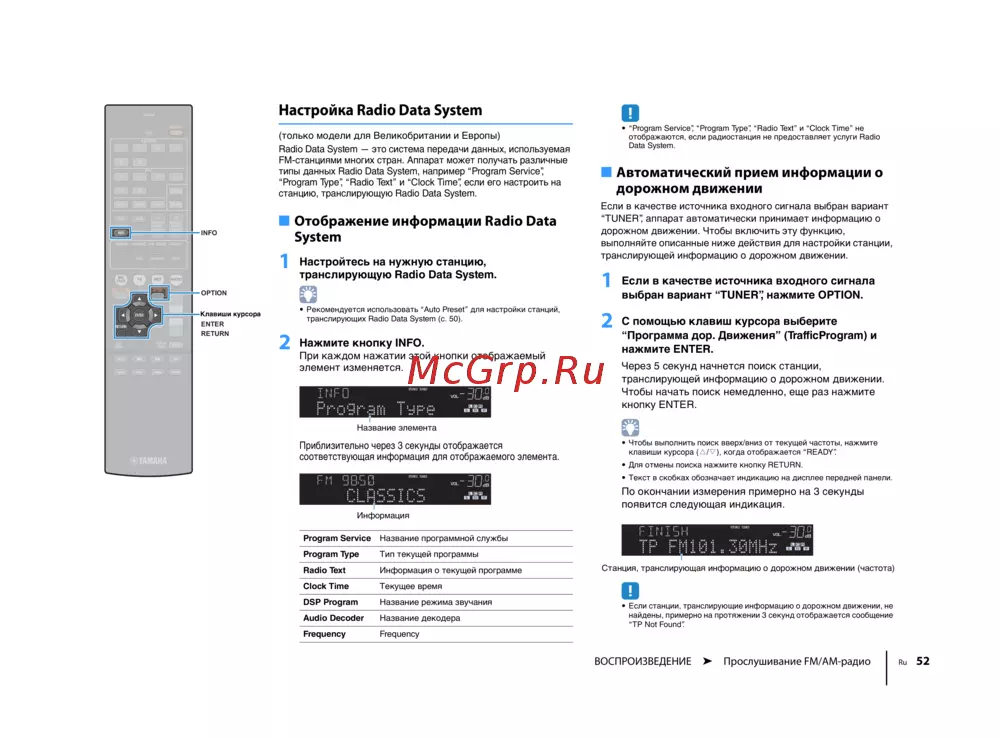 транслирующих Radio Data System (c. 50).