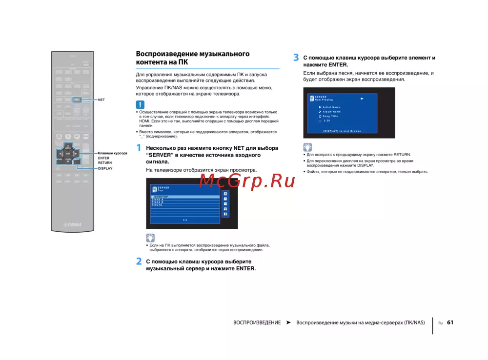 ВОСПРОИЗВЕДЕНИЕ ➤ Воспроизведение музыки на медиа-серверах (ПК/NAS) Ru 61