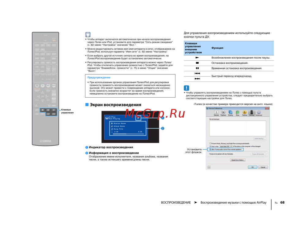 ВОСПРОИЗВЕДЕНИЕ ➤ Воспроизведение музыки с помощью AirPlay Ru 68