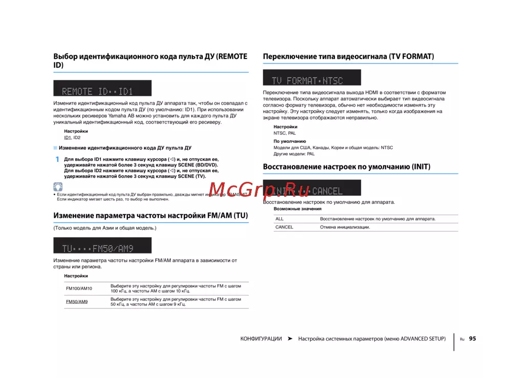 КОНФИГУРАЦИИ ➤ Настройка системных параметров (меню ADVANCED SETUP) Ru 95