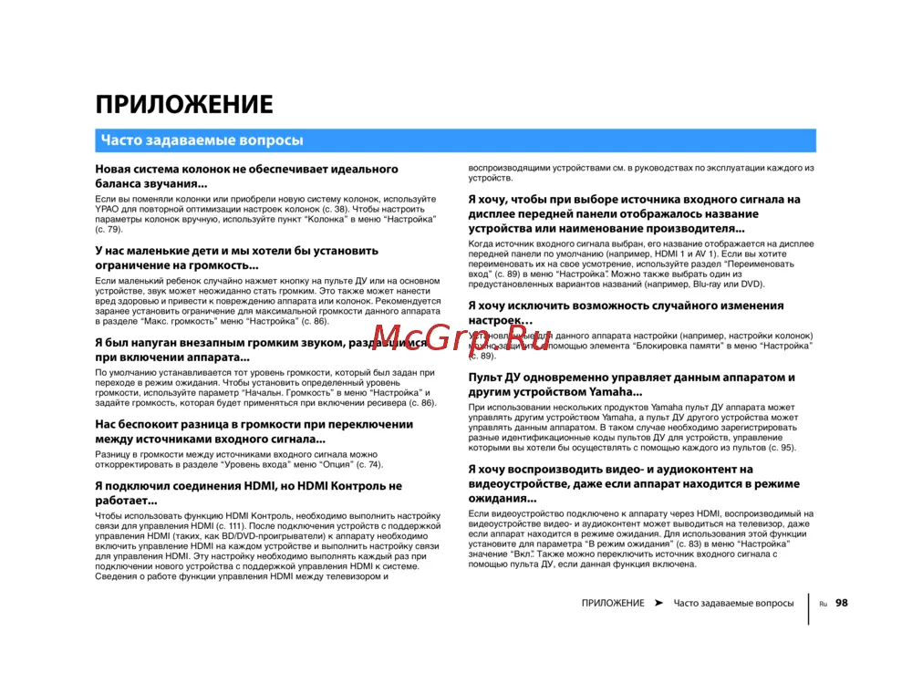 ПРИЛОЖЕНИЕ ➤ Часто задаваемые вопросы Ru 98
