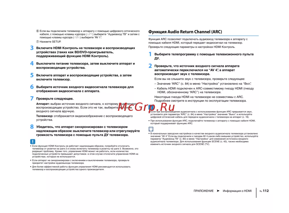 Yamaha RX-V577 Black — настройка HDMI и функции Audio Return Channel для телевизоров [112/123]