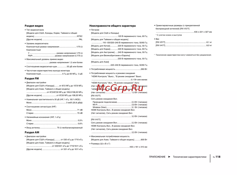 Yamaha RX-V577 Black — технические характеристики видеосигнала и аудио приема [118/123]